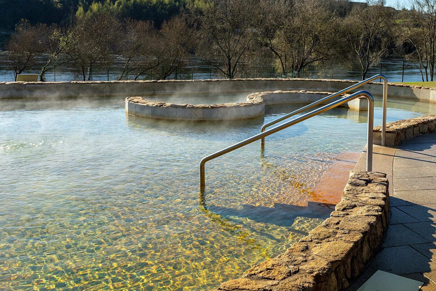 They are considered the largest outdoor hot springs in all of Galicia. It has 3 hot water springs and one cold water spring that springs from the subsoil from the banks of the Miño river. Its mineral-medicinal and thermal waters are useful in respiratory and dermatological processes, due to the action of its sulphurous waters, as well as to combat respiratory and digestive diseases thanks to the effect of its chlorinated and sulfate waters, respectively.