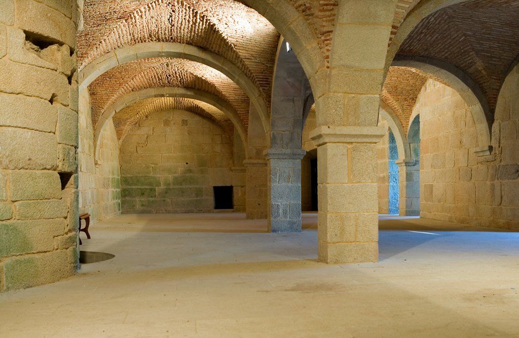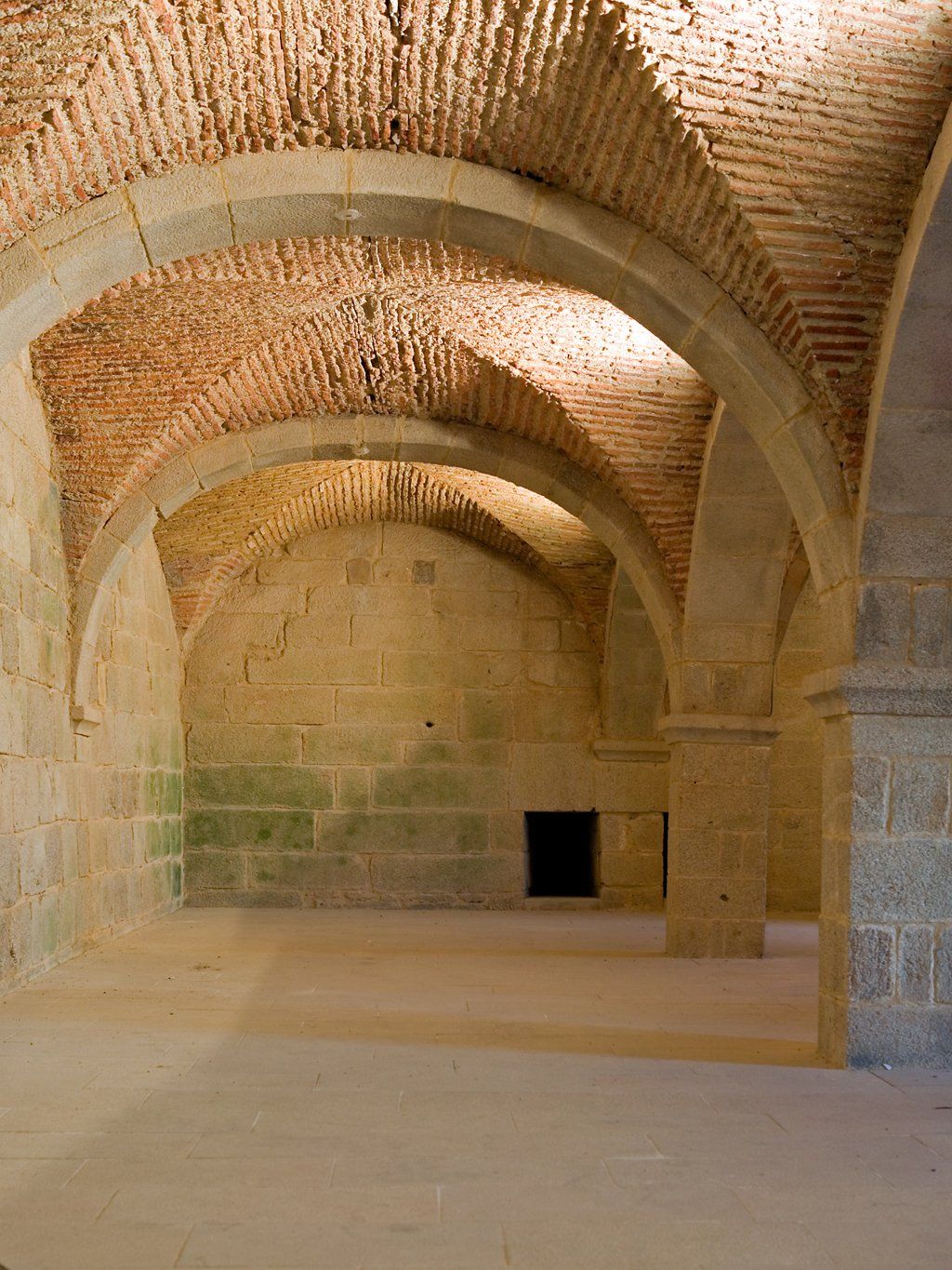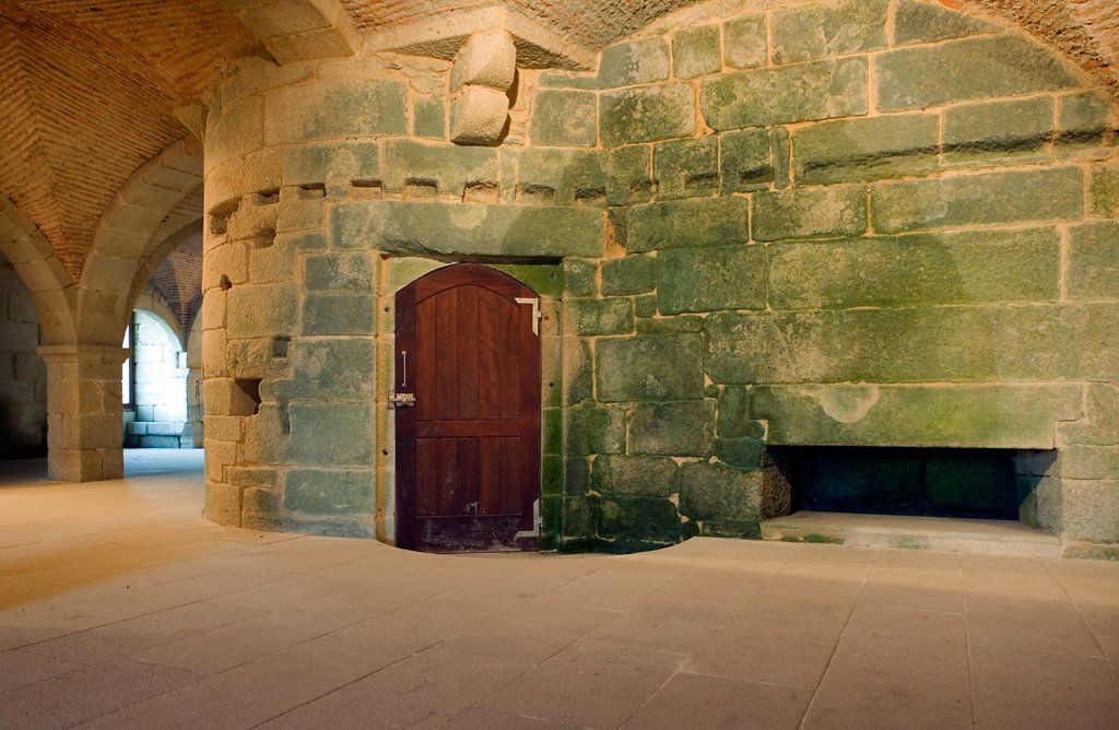 Los pisos inferiores, donde se encuentran las cuevas, son parejos visualmente, mediante piedra granítica, donde se levanta una serie de bóvedas de aristas, con sus arcos de medio punto y sus techos realizados a base de tiras de ladrillo. Un conjunto cerrado por paredes de sillería, con troneras abociadas.